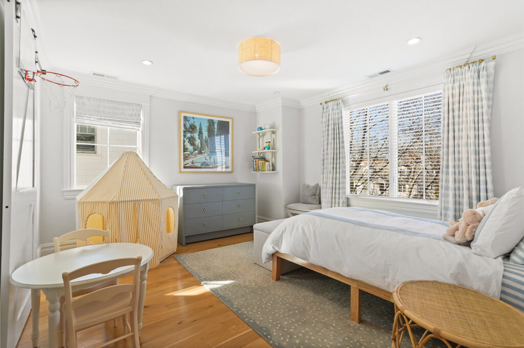 Every detail has been carefully curated, from wide plank white oak floors throughout and custom built-ins, to the finest hardware and finishes. A covered rear porch and beautifully maintained outdoor spaces extend the living experience outdoors.